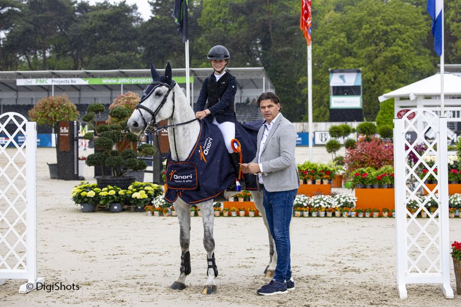 Mila Everse en haar 18-jarige routinier Tuidam was na Finn Boerekamp de tweede deelnemer die foutloos bleef. Daarna lukte dat de combinaties die in de eerste omloop sneller waren dan Mila niet, waardoor Mila haar eerste titel in haar loopbaan veroverde. โIk was de eerste ronde best zenuwachtig, maar de in de tweede was dat al beter. Ik vond de tweede ronde dan ook een stuk beter gaan. Tuidam heeft het parcours dan al gezien en dat geeft me vertrouwen. Tuidam heeft al 1.50m gelopen met Sabrina van Rijswijk. Daarna heeft mijn zus Senna haar gereden en nu rijd ik hem. Ik krijg les van mijn ouders (Mario en Mischa Everse, red). Het parcours had ik voor een deel samen met mijn moeder gelopenโ, vertelt Mila. Over haar aspiraties is ze duidelijk. โIk wil wel naar het EK voor Children, maar weet niet of dat lukt. Het liefst met mijn zus Senna of met mijn vriendinnen.